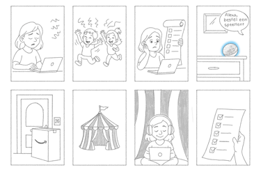 Amazon laat moeders zien dat ze niet alleen staan door verschillende alledaagse momenten te schetsen en voor elke situatie snel de juiste oplossing met een passend product te hebben.