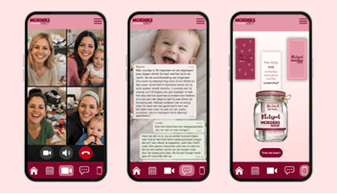 De Moeders zonder filter app is een online omgeving waarin moeders zonder oordeel met elkaar kunnen chatten, videobellen en ervaringen delen over het moederschap. Met gespreksvragen, een agenda en geïntegreerde podcastafleveringen stimuleert de app open gesprekken, herkenning en onderlinge steun.