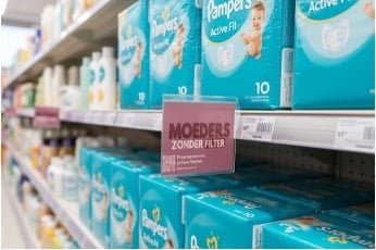 Op verschillende fysieke contactmomenten, zoals het pamperschap in winkels, babywinkels zoals Prénatal en openbare verschoonplekken, worden herkenbare en imperfecte moederschapsmomenten getoond. Deze uitingen sluiten aan bij alledaagse zorgsituaties en maken zichtbaar dat rommel, twijfel en chaos normaal zijn, terwijl een QR-code moeders direct doorverwijst naar de app voor herkenning en steun.